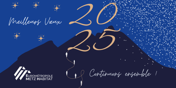 Anne FRITSCH-RENARD, Présidente, les membres du Conseil d’Administration, Pascal COURTINOT, Directeur Général, ainsi que l’ensemble des collaborateurs de la SEM Eurométropole de Metz Habitat vous présentent leurs meilleurs vœux pour 2025 !